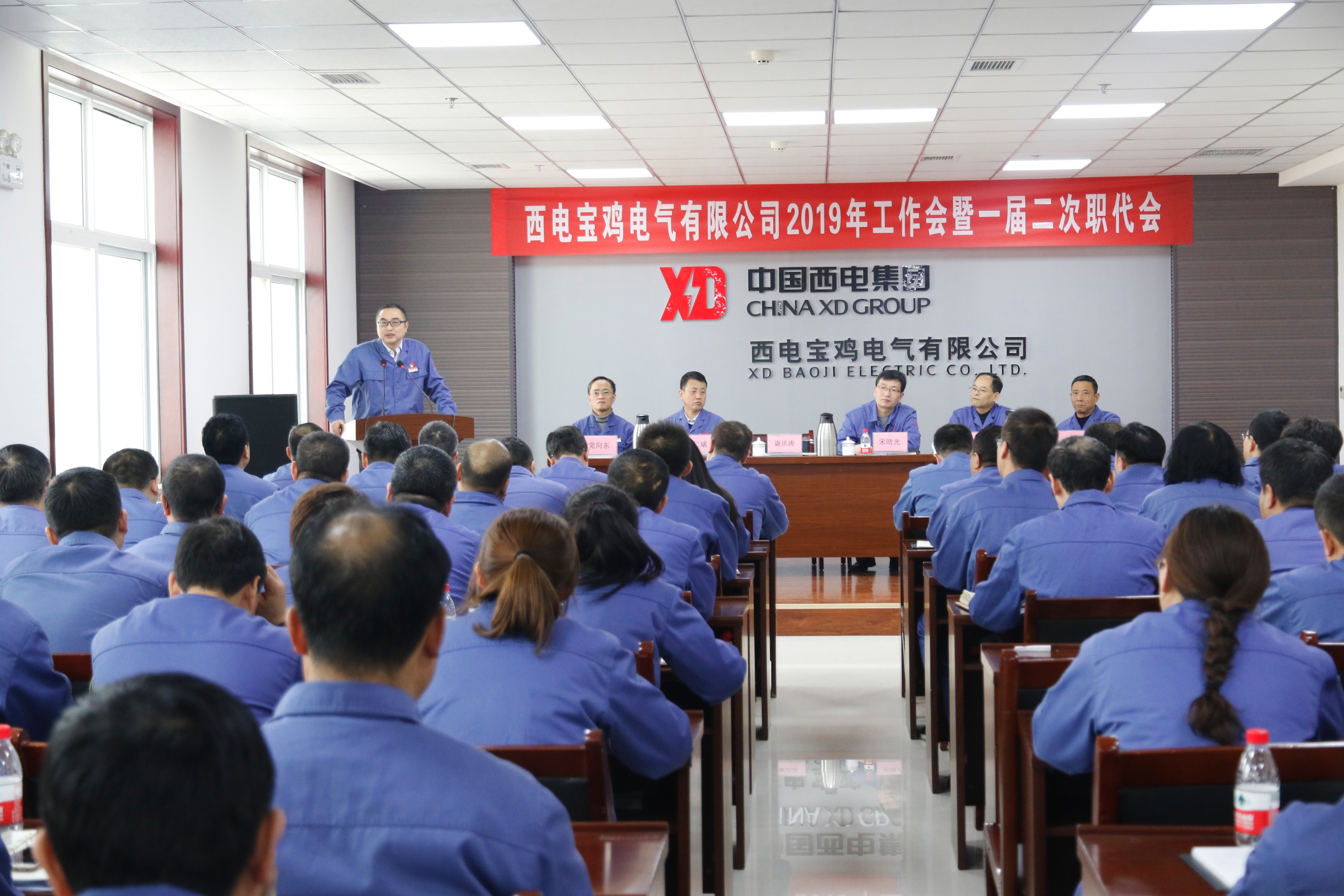 2月12日,西电宝鸡电气召开2019年工作会暨一届二次职代会,公司领导、中层干部、职工代表及先进个人等100余人参加会议,会议由工会主席宋晗光主持。