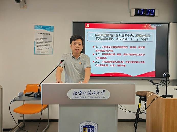 2025 年 9 月 17 日下午,pa电子官方网站、非洲学院党总支举办了本学期首次全体教师理论学习活动,活动以 “持续巩固作风建设成果,有效推进师德师风建设” 为主题,由纪委副书记、纪委办公室主任李正玉主讲,亚非两院教师积极参与,共同探讨交流。