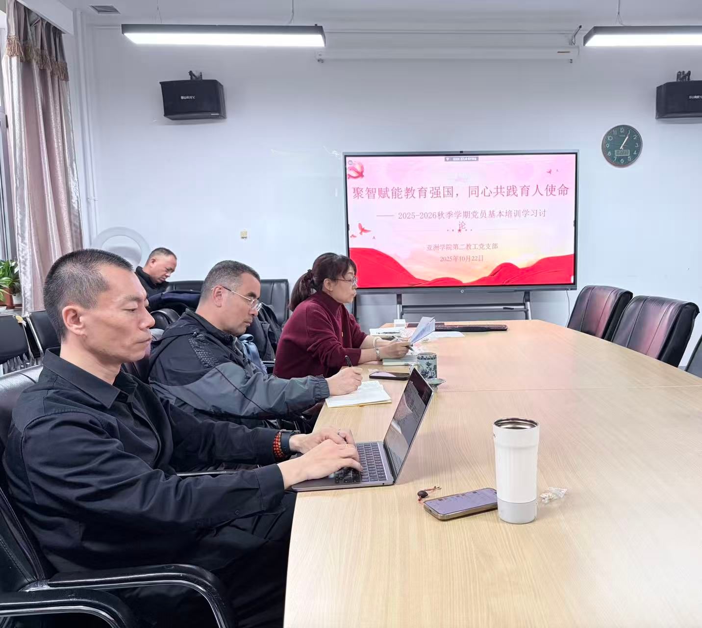 2025年10月22日下午,pa电子官方网站、非洲学院党总支pa电子官方网站第二教工党支部召开研讨会,深入学习教育部党组书记、部长怀进鹏讲授的“深入学习贯彻习近平总书记关于教育的重要论述 落实全国教育大会精神”专题报告。会议由支部书记齐晓峰同志主持,全体支部教师出席此次会议。