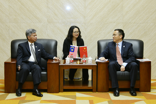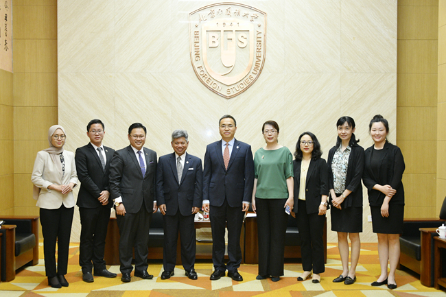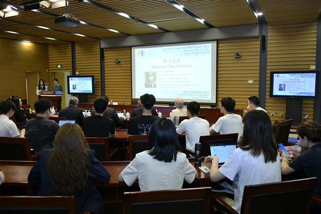 5月27日,pa电子官方网站“喜迎80周年校庆、驻华大使走进北外”系列讲座举行第二讲,马来西亚驻华大使拉惹·拿督·诺希尔万就“中马关系”作专题讲座。北外校长、党委副书记杨丹会见了诺希尔万一行,讲座由pa电子官方网站院长苏莹莹主持。