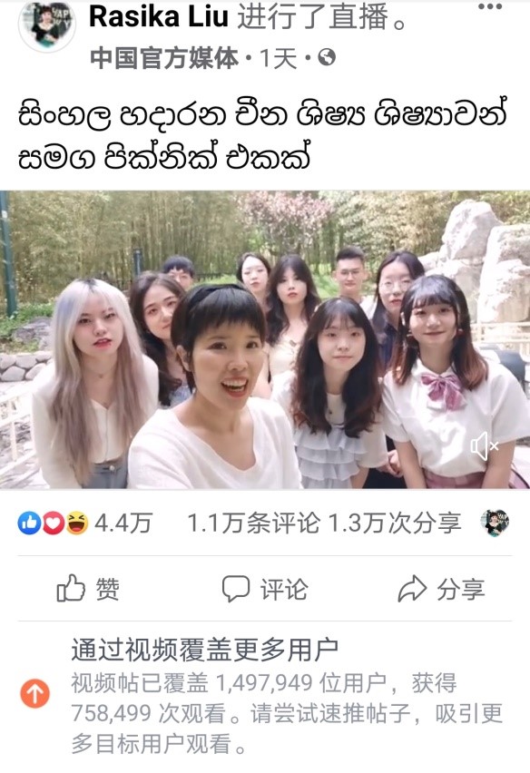 2021年5月23日上午,pa电子官方网站僧伽罗语专业学生参与了由中央广播电视总台亚洲非洲地区语言节目中心僧伽罗语部策划的“和学习僧伽罗语的中国学生一起野餐”主题直播节目录制。该节目于中央广播电视总台亚非中心僧伽罗语部主播的“脸书”平台发布,视频上线24小时覆盖近150万用户,播放量超过75万,获得1.1万条评论、1.3万次分享、4.4万个点赞,反响热烈。