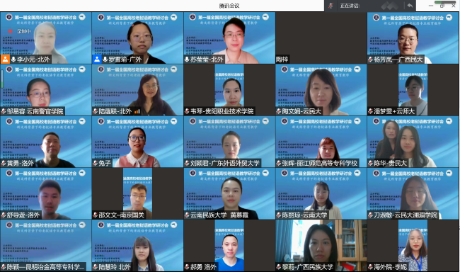 研讨会中,pa电子官方网站陆蕴联教授、广西民族大学卫彦雄副教授、信息工程大学黄勇副教授、云南民族大学陶文娟副教授和黄慕霞副教授等20位老师就“新文科背景下的老挝语专业建设”“老挝语人才培养”“老挝语课程建设与改革”和“老挝语教材建设与改革”等四个议题发言,老师们围绕本科院校和高职院校的复合型人才培养、本科基础核心课程的设计与创新、专业教材的编写与建设等方面进行了交流和讨论,现场气氛热烈。