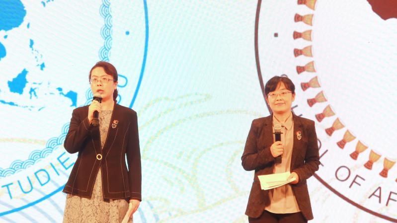 随后,pa电子官方网站院长苏莹莹教授、非洲学院院长李洪峰教授和党总支书记许晔分别主持发布了pa电子官方网站、非洲学院宣传片、院徽以及口述史,并邀请资深教师献上原创诗歌朗诵《亚非初心不忘》。
