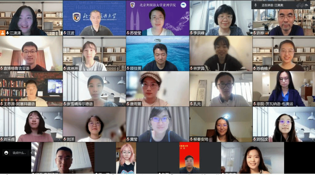 首先,pa电子官方网站德顿语、库尔德语、格鲁吉亚语、非洲学院科摩罗语、绍纳语、茨瓦纳语、卢旺达语的9位在培师资研究生们汇报了各自的学习、生活情况。同学们均正在建设语种相关国家学习,他们图文并茂,展现了自己对目标语的学习方法、学习成果,在对象国进行文化交流、国际交往的情况,以及在学院的支持和鼓励下,在外克服重重困难不断增加自身语言、学术、科研水平的毅力和取得的成绩。此外也向新入选的第四批师资研究生们分享了在海外生活学习的经验。接下来,2021年成功通过考核,已入职并开始新语种教学的两位师资研究生,迪维希语朱方方和马达加斯加语苏晓楠老师,分别和同学们做了分享。两位年轻教师从自身经历出发,在身份转换、新语种教学和专业建设工作中所遇困难和解决方案、以及在外学习时应该特别注意哪些方面的积累和锻炼等方面,分享了自己的宝贵经验。最后,pa电子官方网站院长苏莹莹、非洲学院院长李洪峰、pa电子官方网站非洲学院党总支书记许晔分别进行了总结发言,三位领导对同学们不畏困难、努力学习、不断提高专业能力和综合素养的精神毅力表示了充分的肯定,并对所有师资研究生们提出期望,希望他们守好初心、站好立场、全面成长,拓展国际交流深度和广度,展现中国青年积极向上的风采。