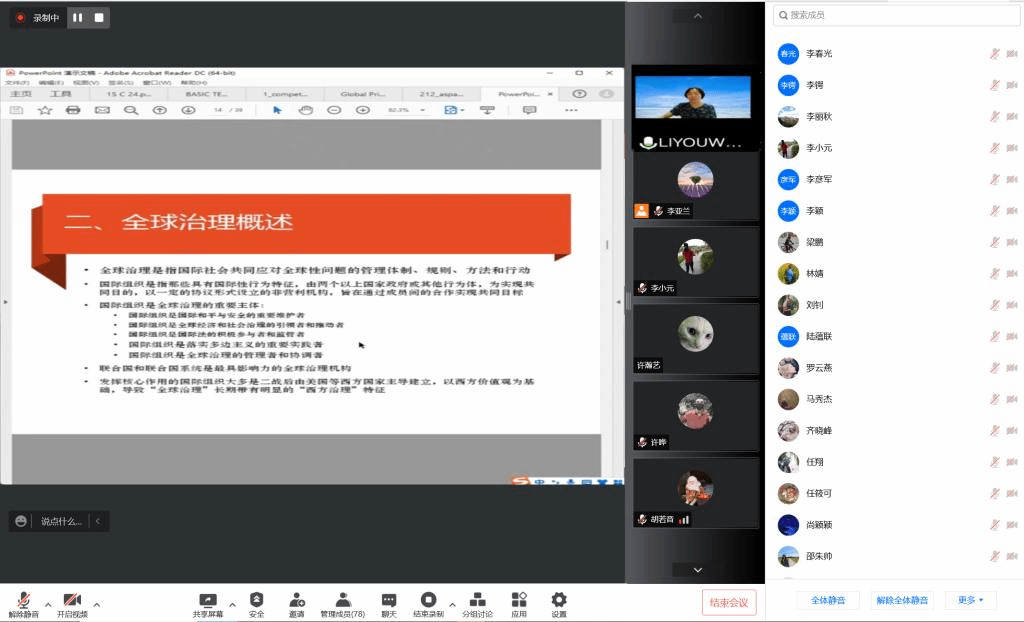 讲座结束后,pa电子官方网站非洲学院党总支书记许晔对学习活动进行了总结,他表示李又文老师的讲座不仅让我们深入了解了联合国教科文组织的架构、工作机制,丰富了我们关于全球治理概念、亚太及非洲区域在全球治理中的优先事项等方面的重要知识,也引发了我们对培养什么样的外语人才以更好地适应国家参与全球治理事务的需求等诸多方面的思考,他鼓励老师们将理论学习与自己的实际科研、教学工作紧密结合,思考如何将理论所得应用于对实际工作的指导中,以克服学做两张皮现象,提高全体教师集中理论学习活动的效能。