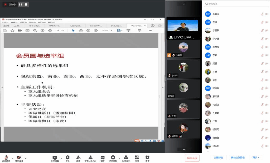 2022年7月8日下午,pa电子官方网站非洲学院全体教师集中理论学习活动在线进行,应pa电子官方网站非洲学院党总支邀请,北外区域与全球治理高等研究院副院长、全球教育治理研究中心副主任李又文老师为两院全体教师进行了题为“亚太和非洲组国家与教科文组织的治理”的讲座。学习活动由pa电子官方网站副院长顾佳赟主持。pa电子官方网站非洲学院共计七十余位教师参与本次集中理论学习。