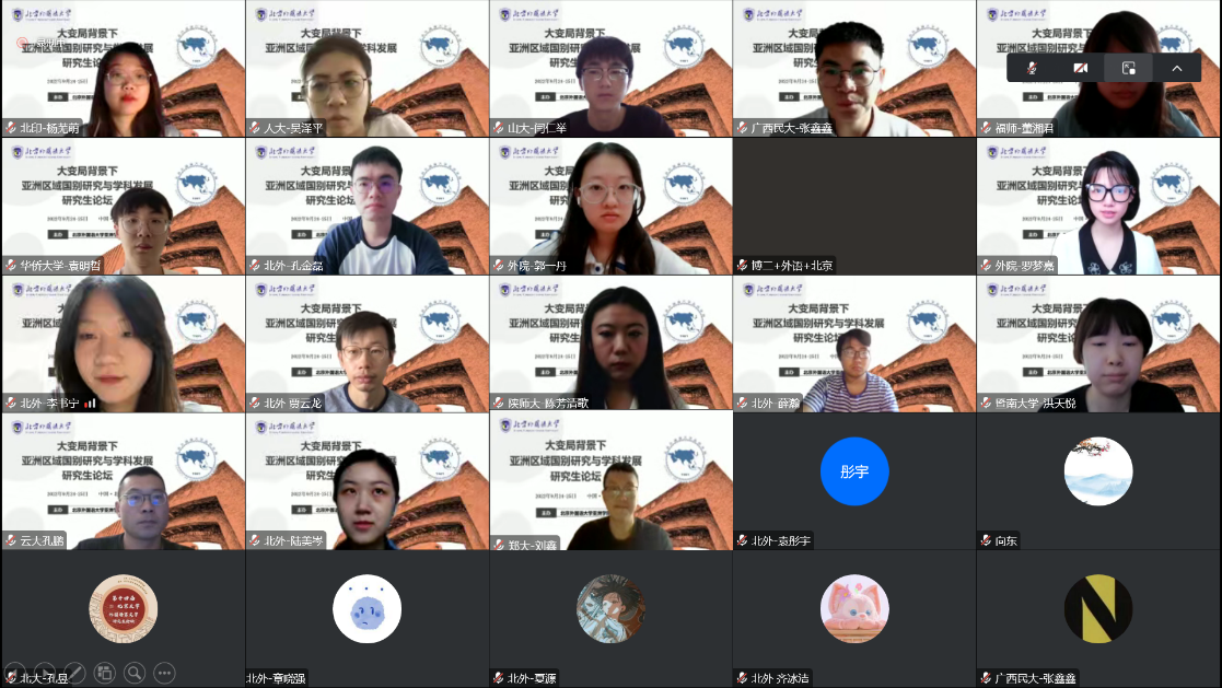 2022年9月24至25日,“大变局背景下亚洲区域国别研究与学科发展”研究生论坛在pa电子官方网站如期举行。本次论坛采取线上形式,分为东北亚研究、东南亚研究、南亚研究以及其他领域研究三个模块,共收到来自国内外31所知名高校和科研院所共57位研究生的投稿,专家组最终评选出32篇优秀论文参与此次论坛。