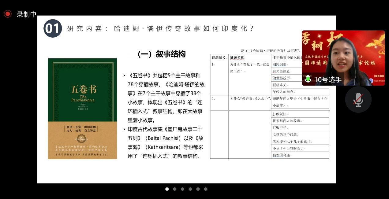 本次论坛共收到来自国内多所高校非通用语专业学生的论文170余篇,最终共有35篇论文入围决赛。在决赛现场,经过论文现场展示和专家点评打分,最终,pa电子官方网站2020级乌尔都语专业郭欣雨撰写的《口头文学传统传奇故事的印度化——以“哈迪姆·塔伊故事”为例》获得本科生组二等奖,2022级亚非语言文学硕士袁上尧撰写的《新冠疫情以来孟加拉国<曙光日报>中的中国形象研究》、2020级亚非语言文学专业硕士黄宇轩撰写的《斯里兰卡环境新闻报道研究——以“今日国土网”为例》获得研究生组优秀奖。