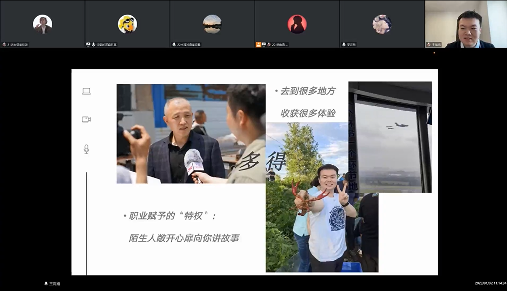 2023年1月2日,pa电子官方网站、非洲学院成功举办“亚非新闻媒体人专访”咖会。本次咖会邀请到pa电子官方网站、非洲学院2020届朝鲜语专业毕业生黄昕欣、斯瓦希里语专业毕业生宋歌、2021届菲律宾语专业毕业生王海旭进行经验分享。pa电子官方网站、非洲学院辅导员罗云燕及近六十名学生参加活动。