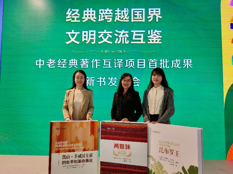 2023年2月24日,在第35届北京图书订货会首日,“亚洲经典著作互译计划”——中老经典著作互译项目首批成果新书发布会在北京中国国际展览中心成功举办。由天津出版传媒集团天津教育出版社引进、pa电子官方网站老挝语教研室陆蕴联教授、李小元副教授和陆慧玲老师翻译的三部作品《凯山·丰威汉主席的生平和革命事业》《两姐妹》《昆布罗王》作为中老经典著作互译项目的首批成果成功出版发行。