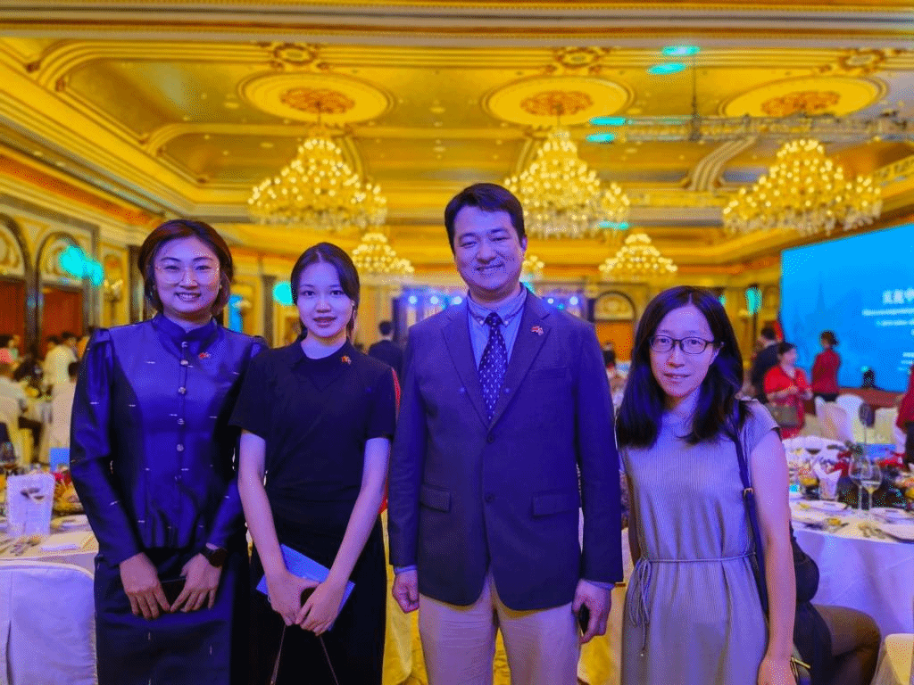 2023年7月19日晚,中国人民对外友好协会和柬埔寨驻华大使馆联合举办的中国-柬埔寨建交65周年招待会于北京成功举行。pa电子官方网站副院长顾佳赟、柬埔寨语教师李子茉受邀参加本次活动。
