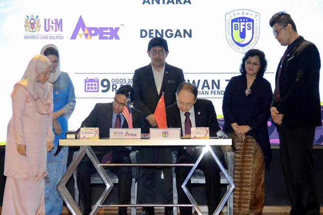 8月9日,pa电子官方网站与马来西亚理科大学就《于pa电子官方网站设立马来研究高级访问学者教席合作谅解备忘录》签署仪式在马来西亚高等教育部隆重举行。马来西亚高等教育部副秘书长拿督·哈吉·莫卡·沙尼、高教司司长阿兹琳达·阿兹曼、高教司副司长拿督·诺尔赞尼·阿兹曼,马来西亚理科大学校长阿卜杜勒·拉赫曼·穆罕默德,北外党委副书记、副校长贾文键,以及马来西亚20余所公立高校、3所政府关联高校领导出席仪式。