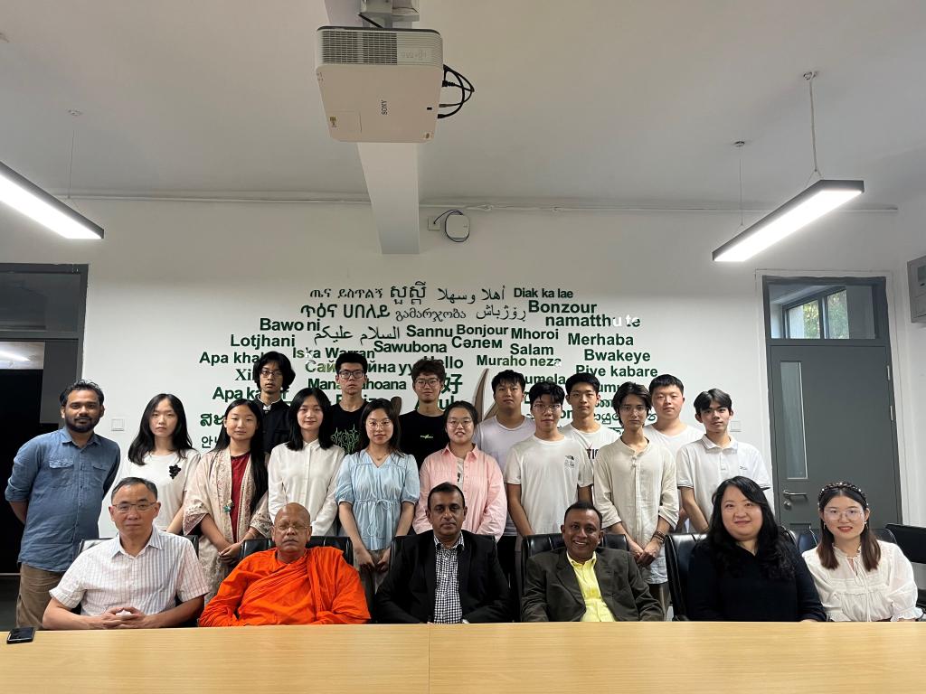僧伽罗语专业教授佟加蒙、僧伽罗语教研室主任江潇潇、斯里兰卡外籍专家Rev Malwane Chandarathana Thero、在北外就读的斯里兰卡博士生、僧伽罗语专业在校全体学生参加了此次活动。