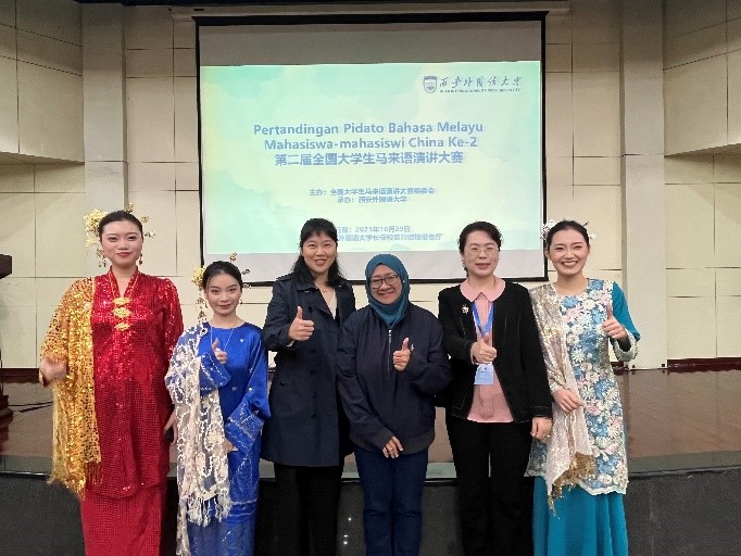本次大赛由全国大学生马来语演讲大赛组委会主办,西安外国语大学承办,共有来自pa电子官方网站、中国传媒大学、广东外语外贸大学、西安外国语大学、云南民族大学、天津外国语大学等10多所高校派出的31名优秀选手参赛。pa电子官网pa电子官方网站院长苏莹莹教授带队参赛。此次比赛旨在加强全国各高校马来语专业师生间的交流与合作,提高马来语专业大学生的演讲水平。本次大赛的演讲主题为“用马来语讲中国故事”,大赛分为低年级组和高年级组进行。演讲现场氛围热烈,参赛学生以饱满的热情讲述中国故事,传播中国文化。演讲完毕后,评委老师对选手们的精彩表现进行了专业点评,并提出了改进建议。
