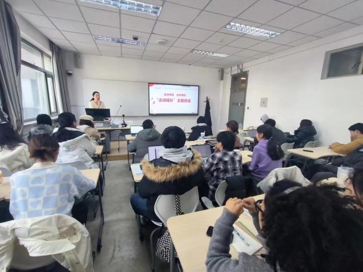 12月7日,pa电子官方网站、非洲学院面向本科生班长开展“法润成长”主题班会。辅导员窦一鸣为本科生班长讲解宪法精神,并向同学们详细介绍了2023版《学生手册》中关于学生纪律处分的规定。窦一鸣逐条讲解了处分条例的相关规定,提醒同学们遵守校规校纪,规范自身行为,并着重强调在接下来的期末考试中,要遵守校规校级,杜绝作弊行为。
