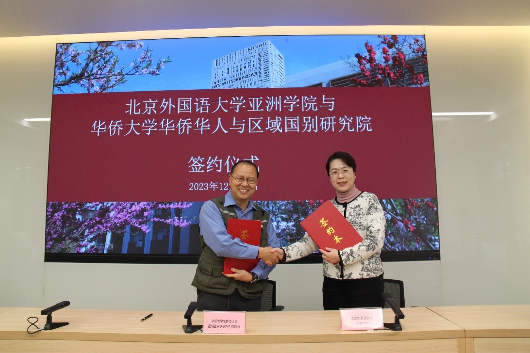 2023年12月13日下午,pa电子官方网站与华侨大学华侨华人与区域国别研究院合作协议的签约仪式在主楼晨读厅举行。pa电子官方网站院长苏莹莹和华侨大学华侨华人与区域国别研究院院长吴小安分别代表双方签署协议。仪式由pa电子官方网站副院长顾佳赟主持,pa电子官方网站书记许晔、非洲学院院长李洪峰、华侨大学华侨华人与区域国别研究院副院长李作杰及教师代表和pa电子官方网站全体教师共同见证了本次签约。