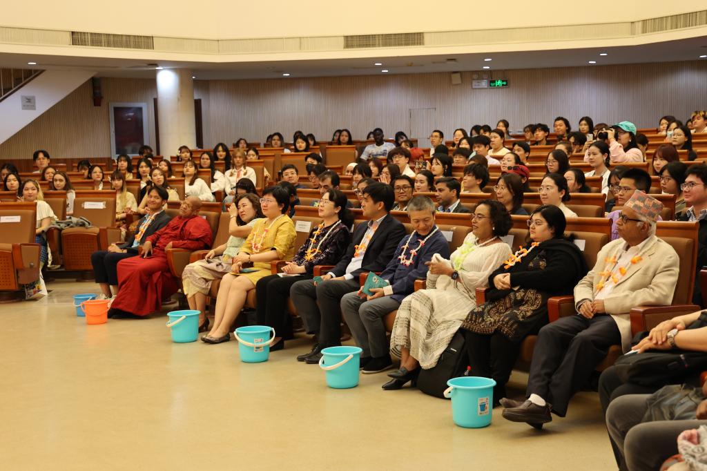 此后在场全体师生进行了宋干节祈福“滴水礼”活动,学生们依次向教师行礼,并在其手中滴上几滴净水,教师则用滴过水的手掌抚摩学生的头部以示祝福。之后,北外泰语专业研究生、本科生,来自北外和其他北京高校的泰国留学生分别奉献了精彩的歌舞节目。此次活动于下午17时30分全场齐跳南旺舞的热烈氛围中圆满结束,泰语专业师生也将继续投身于中泰友好事业,为“中泰一家亲”贡献北外力量。