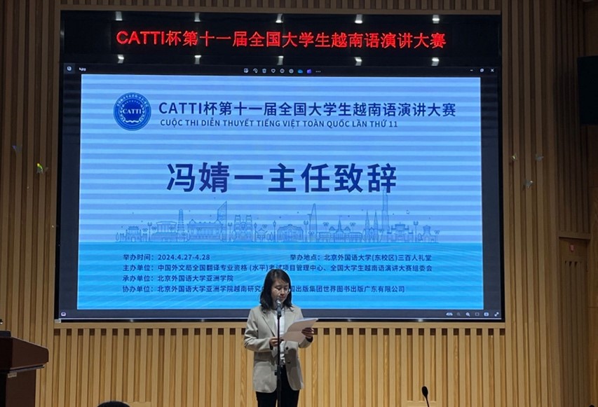 冯婧一副主任则对本次大赛的组织和举办给予了高度评价。她表示,CATTI杯全国大学生越南语演讲大赛已经成为展示越南语专业学生风采的重要平台,也是推动中越文化交流的重要途径。她希望更多的学生能够参与到这样的比赛中来,通过交流和竞技,不断提高自己的语言能力和文化素养。