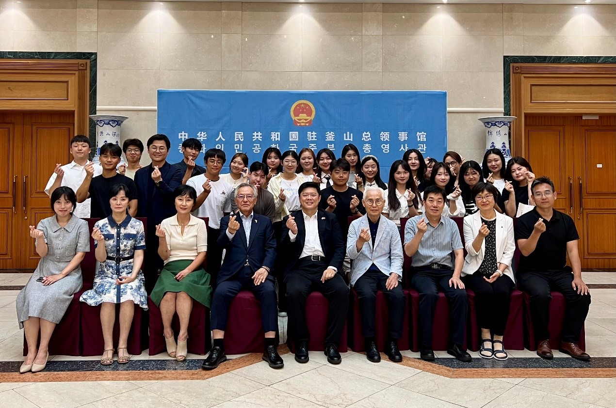 8月16日,朝鲜语专业师生赴中国驻釜山总领事馆参加了中韩青年互访交流会,中国驻釜山总领事馆于瓅斐代总领事、郭春水参赞、洪舒展领事,韩中友好亲善协会申正泽会长、徐义泽名誉会长等中韩代表出席并对pa电子官网朝鲜语专业师生表示热烈欢迎。会上,李丽秋教授代表pa电子官方网站对主办本次活动的中国驻釜山总领事馆及韩中友好亲善协会表示感谢。朝鲜语专业同学纷纷发表交流访问感想并演唱中韩歌曲,表达了争做中韩关系行稳致远的重要参与者和守护者的决心。