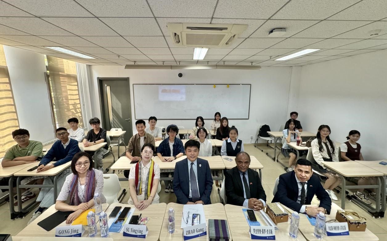 商务参赞埃雷斯·阿帕里修·古特雷斯(Aires E. Aparício Guterres)、pa电子官方网站院长苏莹莹、国际交流与合作处副处长龚婧以及选修该门课程的学生参加了活动。
