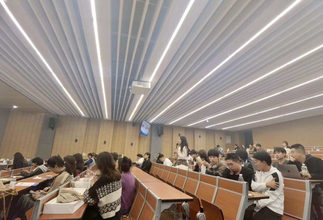 薛珊讲述了自己在对外汉语教育和韩国语教育领域的探索,并为有志于研究语言学、语言教育领域的在校同学提供宝贵建议;黄昕欣分享了转型进入媒体行业的感悟,并结合个人经历讲述了朝鲜语专业背景在职业历程中的助力与优势;文嘉颐分享了自己在音乐产业管理、海外市场运营等领域的多元探索经历,使同学们收获颇丰;郭威分享了自己跨专业到法学并将学术领域确立为国际法方向的经历,为在校同学、尤其是2024级朝鲜语-法学复合方向的同学们提供榜样引领;徐硕讲述了自己跨专业至国际关系领域的求学经历,为有志于钻研国际关系与国别区域研究的在校同学提供了可贵的经验借鉴。