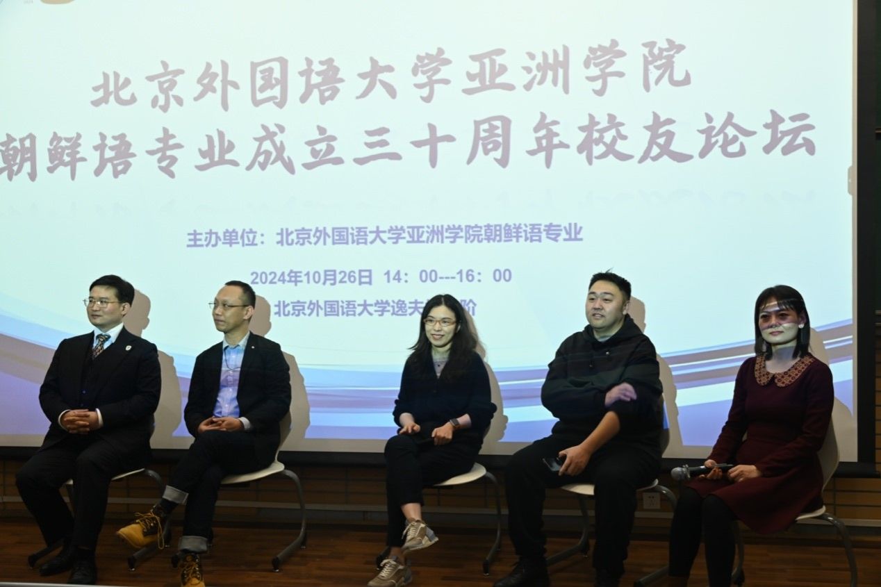 2024年10月26日下午,pa电子官方网站朝鲜语专业成立三十周年系列活动暨校友论坛在逸夫楼一阶圆满召开。此次论坛旨在充分发挥朝鲜语专业校友的榜样引领作用,为在校学生提供与优秀校友交流学习的平台,特邀十位优秀校友就学术探索与职业发展经历进行分享。论坛由朝鲜语专业任翔老师、周晓蕾老师主持,历届校友、在校本科生与研究生共百余人参加。