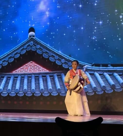 暖场节目器乐合奏《紫色激情》节奏欢快、旋律激昂,拉开了本次文艺演出的序幕。中国传统乐器琵琶与葫芦丝携手现代钢琴演绎朝鲜语民歌名曲《阿里郎》,使观众感受到文化的交融与传承。歌曲部分兼顾了不同年龄层,既有在年轻人中具有超高人气的韩国流行歌曲《if you》,又有怀旧风格的韩国trot曲风抒情歌曲《爱情总是逃走》,带给观众们深深的感动。韩国流行舞蹈《I AM》和《hype boy》活力四射,观众反响热烈。