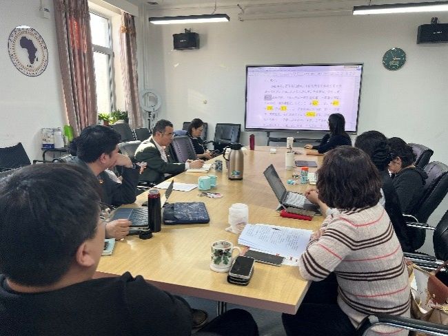 2025年2月18日下午,pa电子官方网站非洲学院党总支理论学习中心组在主楼344会议室开展《教育强国建设规划纲要(2024-2035)》专题学习活动。会议由党总支书记许晔主持,全体中心组成员参加。