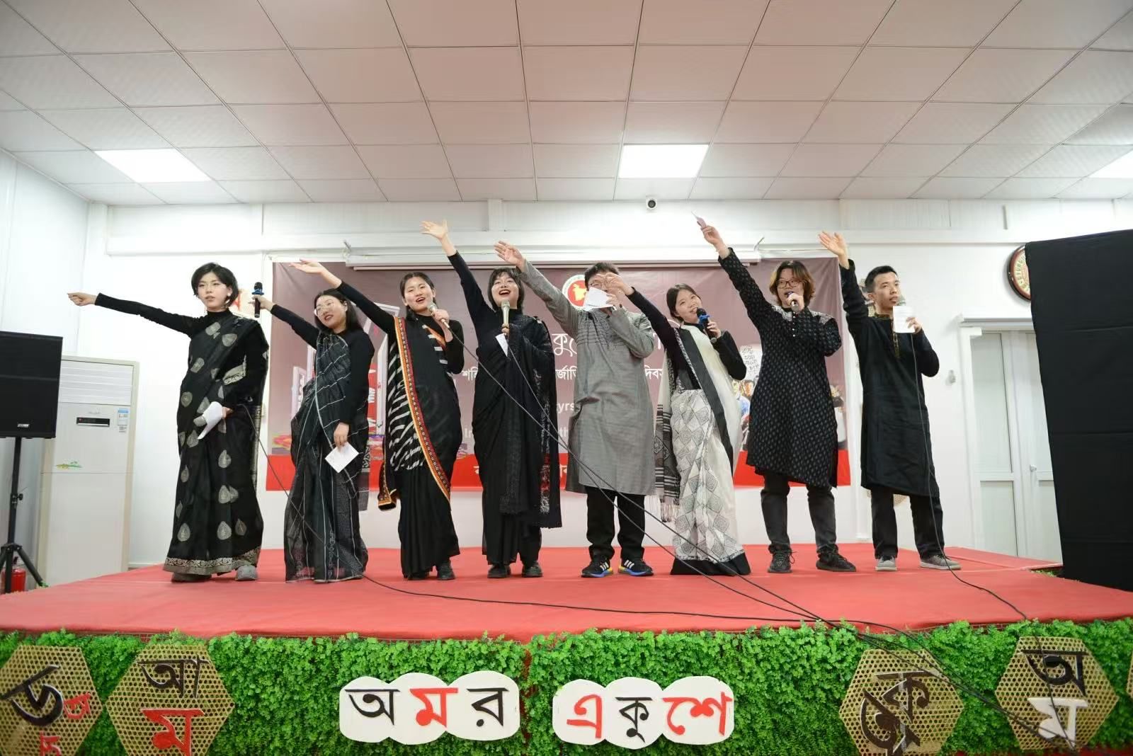 在活动中,pa电子官方网站孟加拉语专业学生带来精彩表演。研究生李源毓、朱美澄,本科生张千扬、张丹妮、崔洛宾、赵澜清、王佳亿、杨潇然演唱了孟加拉语歌曲《我以孟加拉语歌唱》(Ami Banglay Gaan Gai)以及中孟双语版歌曲《一起向未来》,节目演出反响热烈。最后,使馆向参演学生颁发表演证书,以资表彰和感谢。