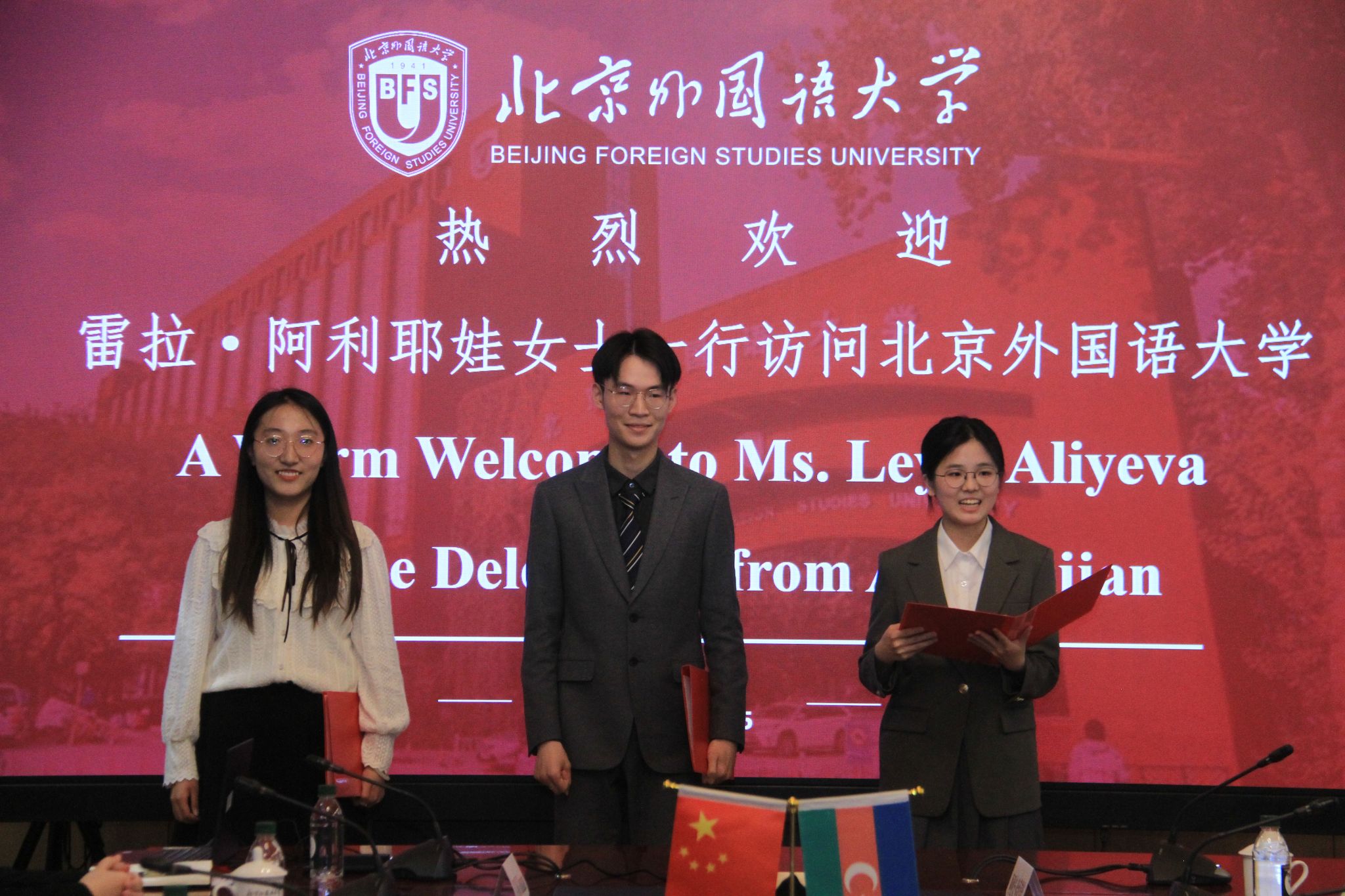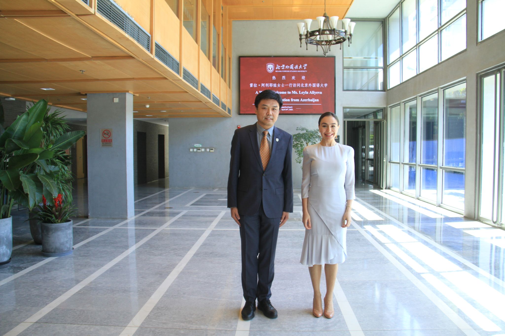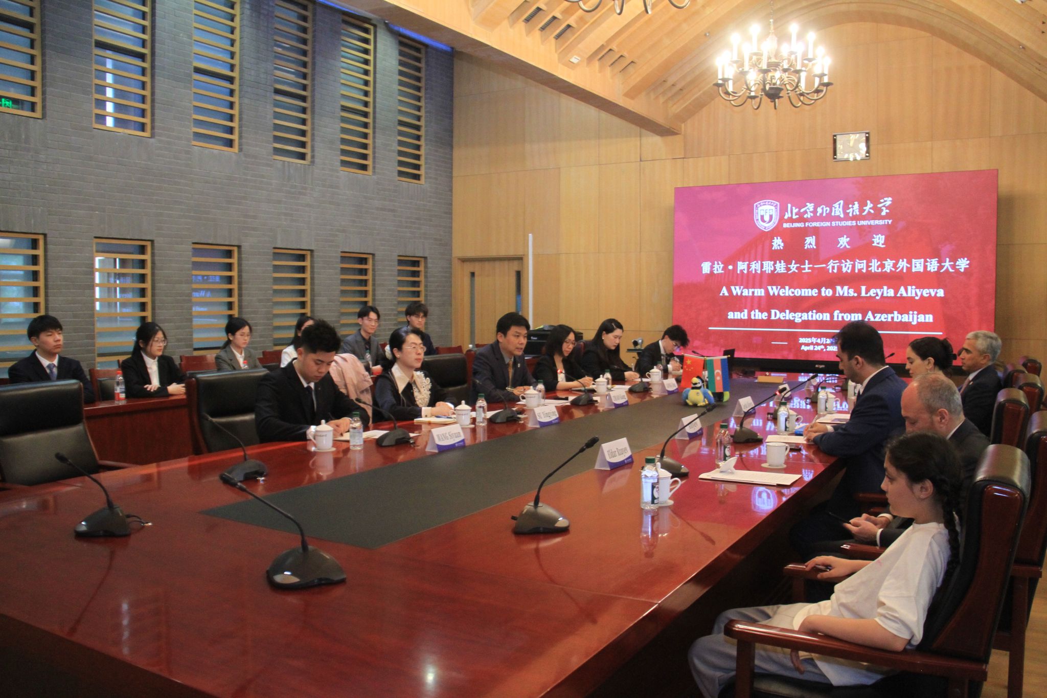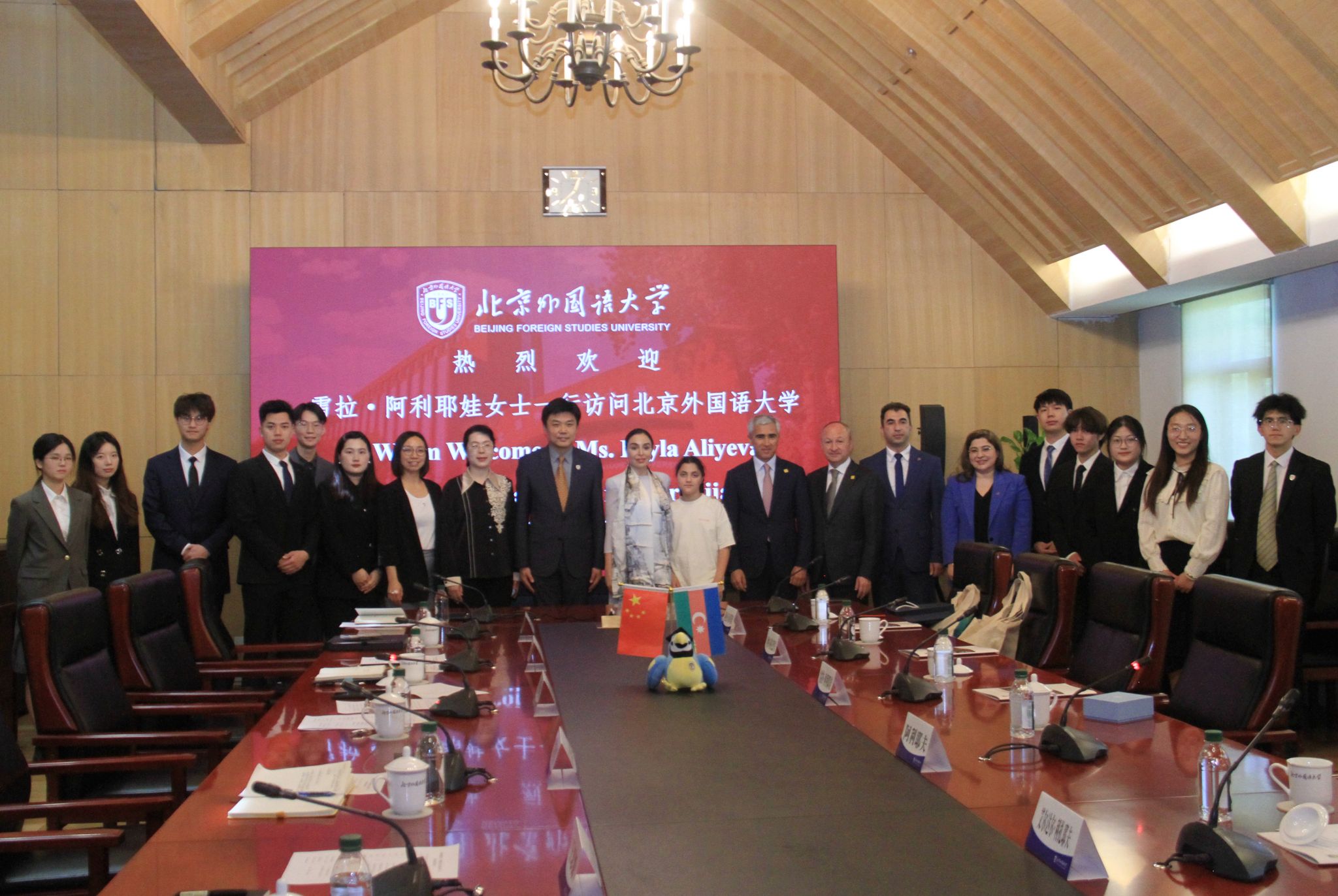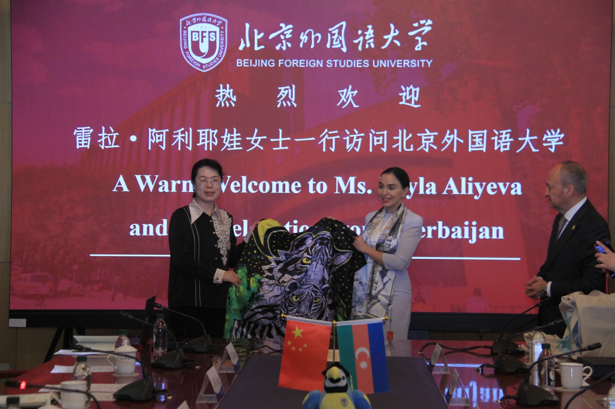 莱拉·阿利耶娃高度评价北外在阿塞拜疆人才培养方面的成就。她强调,中阿友谊源远流长,她将一如既往支持中阿关系发展,积极推动两国青年交流和教育合作。盖达尔·阿利耶夫基金会执行主任、总统助理阿纳尔·阿拉克巴罗夫则表示,盖达尔·阿利耶夫基金会将通过捐赠阿塞拜疆语图书、邀请中国学生参加相关文化交流活动等方式继续支持北外阿塞拜疆语专业建设。