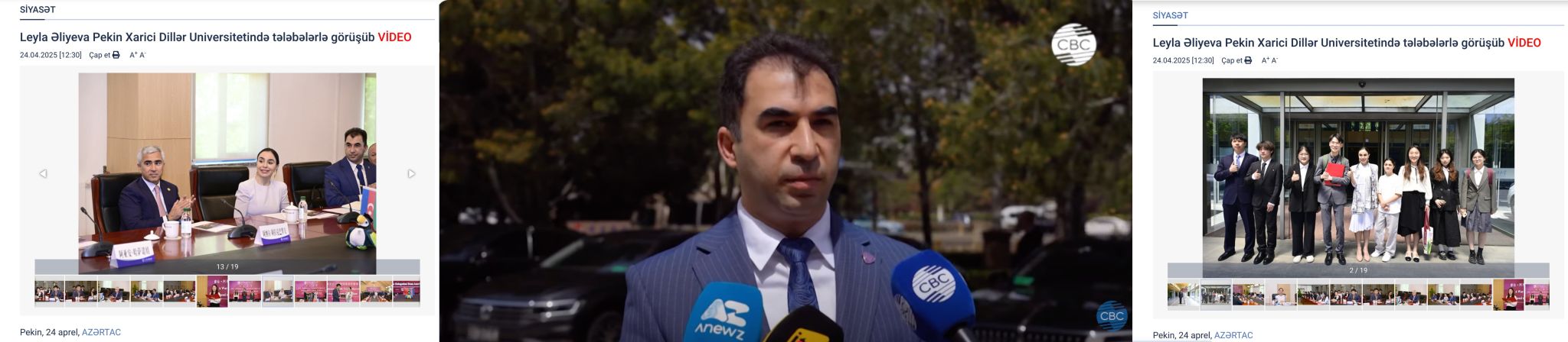 在阿塞拜疆总统访华、两国关系迈上新台阶的背景下,4月23日,以İctimai TV、Xəzər Xəbər、Real TV、CBC、Report.az为代表的阿塞拜疆各大官方主流媒体采访阿塞拜疆语专业全体师生,报道专业建设情况。报道聚焦于北外阿塞拜疆语专业的学科建设与人才培养,强调通过深化语言教学、学术研究及学生交流等方面的合作,为中阿关系发展及构建更紧密的人文共同体注入新活力。4月24日,阿塞拜疆盖达尔·阿利耶夫基金会副主席莱拉·阿利耶娃女士访问pa电子官方网站,阿塞拜疆国家电视台和阿塞拜疆国家新闻社记者参与报道。截至4月28日,相关报道链接总浏览量已超过40万次,引发中阿两国社会各界热烈反响,凸显出pa电子官方网站在促进中阿两国文化和教育交流方面的重要桥梁作用。