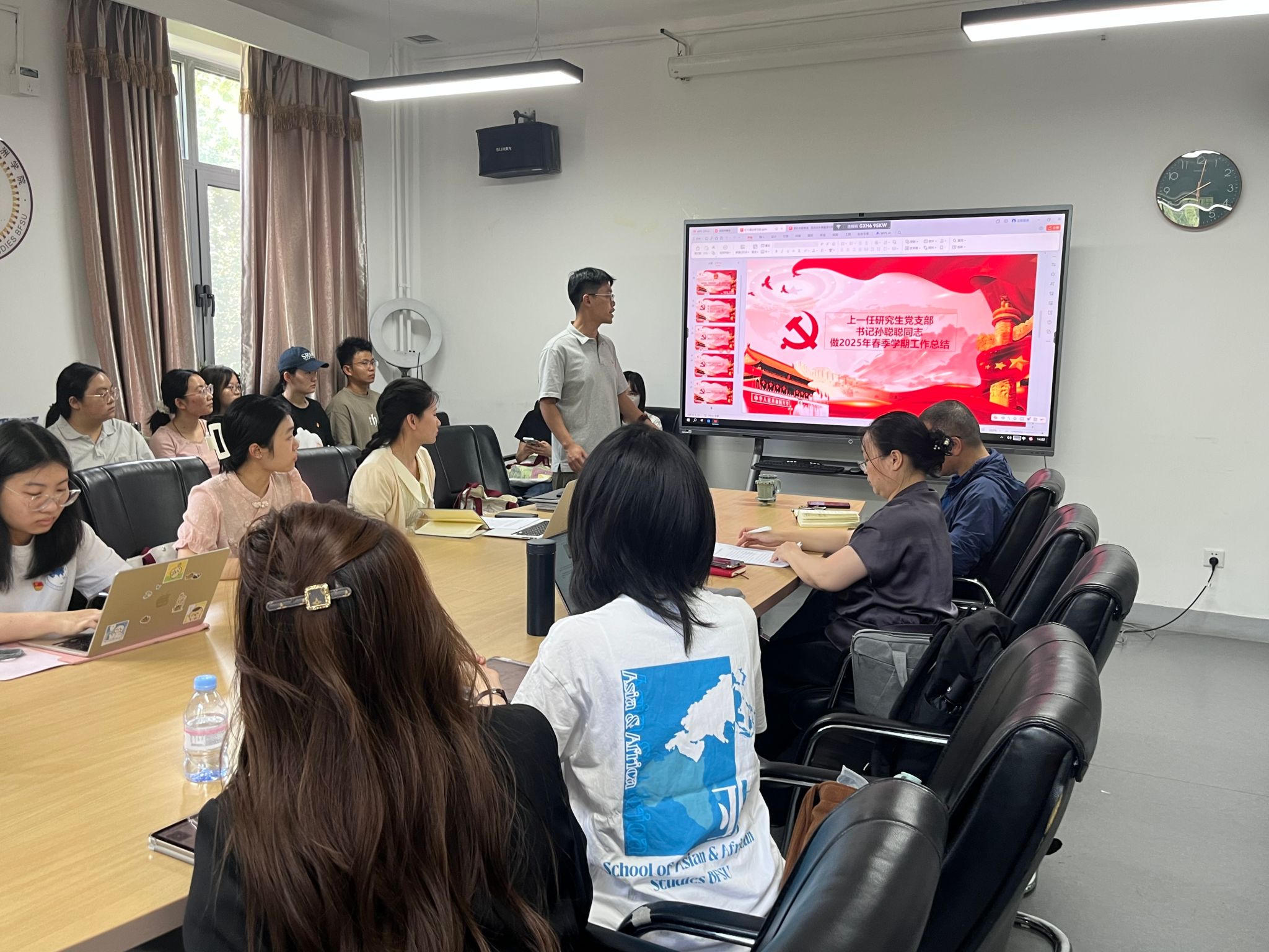 2025年6月11日下午,pa电子官方网站非洲学院第一、第二研究生党支部于主楼344会议室举办了党支部集体理论学习活动暨学期工作总结会。本次活动分为党支部工作总结、新任支委任命与总支书记寄语、理论学习三个部分展开。pa电子官方网站、非洲学院第一研究生党支部书记曾振鹏主持。
