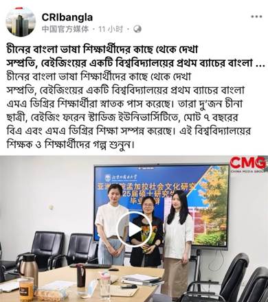 7月30日,中国中央广播电视总台孟加拉语部推出聚焦pa电子官方网站孟加拉语专业的专题节目。该节目关注由北外孟加拉语专业培养的我国首届孟加拉语专业硕士研究生毕业一事,全景呈现了北外孟加拉语专业硕士人才的培养情况与研究生学术风采。