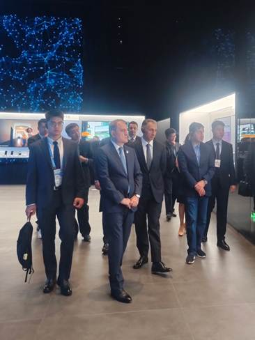王思源老师(左一)陪同阿塞拜疆外交部部长、经济部长、数字与交通部部长参观联想(天津)智慧创新服务产业园