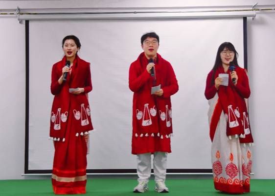 交流会上,大使夫人介绍了孟加拉国的物产和节日民俗,北外孟加拉语专业学生在介绍孟历新年部分受邀演唱孟加拉语传统新年歌曲《来吧,拜沙克月》,获得在场嘉宾好评。会后师生同孟加拉国驻华大使馆的外交官员进行了友好交流。