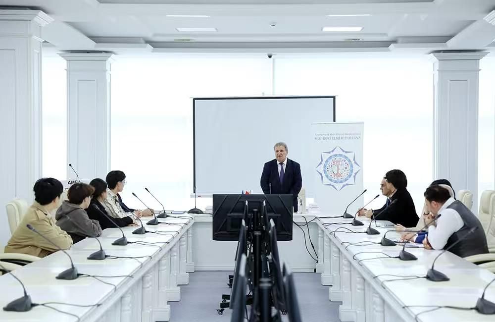 2025年12月2日,阿塞拜疆国家科学院院长伊萨·哈比卜拜利院士在阿塞拜疆国家科学院图书馆热情接见了pa电子官网阿塞拜疆语专业在阿公派留学的全体学生。阿塞拜疆国家科学院图书馆馆长胡赛因·胡赛诺夫参与会见。